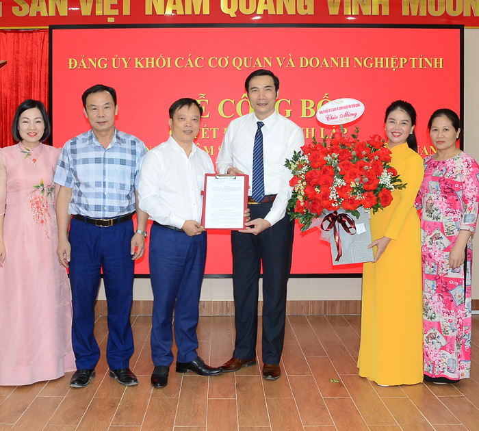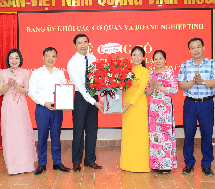 Tại hội nghị, đồng chí Trưởng Ban Tổ chức Đảng ủy Khối các cơ quan và Doanh nghiệp tỉnh Ma Văn Khắp đã công bố Quyết định số1574-QĐ/ĐUK của Đảng ủy Khối về hợp nhất Chi bộ Công ty cổ phần Lâm sản và Khoáng sản Tuyên Quang, Chi bộ Công ty cổ phần xây lắp, sản xuất và kinh doanh VLXD Tuyên Quang, Chi bộ Công ty cổ phần Vật liệu xây dựng Viên Châu thành Đảng bộ Công ty cổ phần Lâm sản và Khoáng sản Tuyên Quang khóa I, nhiệm kỳ 2023-2025. BCH Đảng bộ 7 đồng chí, trước mắt chỉ định 05 đồng chí vào BCH Đảng bộ Công ty cổ phần Lâm sản và Khoáng sản Tuyên Quang khóa I, nhiệm kỳ 2023-2025, gồm các đồng chí: Nguyễn Phương Nam, Lê Thị Thanh Toàn, Đỗ Thị Hồng Hoa, Tống Thị Kim Liên, Nguyễn Đức Hạnh. Chỉ định đồng chí Nguyễn Phương Nam, giữ chức vụ Bí thư Đảng ủy Công ty cổ phần Lâm sản và Khoáng sản Tuyên Quang; đồng chí Lê Thị Thanh Toàn, giữ chức vụ Phó Bí thư Đảng ủy Công ty cổ phần Lâm sản và Khoáng sản Tuyên Quang.
