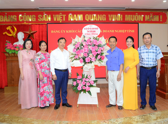 Thay mặt lãnh đạo Hiệp hội doanh nghiệp tỉnh, đồng chí Nguyễn Văn Minh, Phó Chủ tịch Hiệp hội, Bí thư chi bộ Hiệp hội doanh nghiệp tỉnh tặng hoa chúc mừng BCH Đảng bộ Công ty cổ phần Lâm sản và Khoáng sản Tuyên Quang.