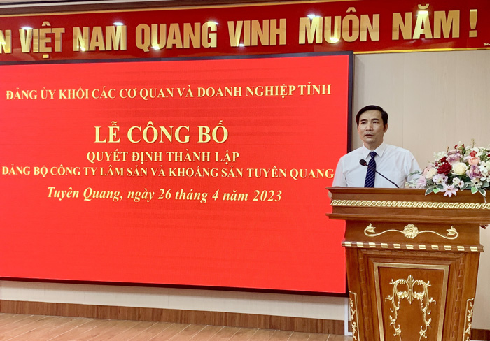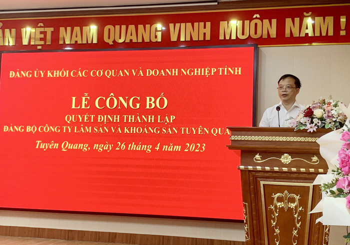 Ngày 26/4/2023, tại Công ty cổ phần Lâm sản và Khoáng sản Tuyên Quang, BTV Đảng ủy Khối các cơ quan và Doanh nghiệp tỉnh đã trọng thể Công bố thành lập Đảng bộ Công ty cổ phần Lâm sản và Khoáng sản Tuyên Quang.