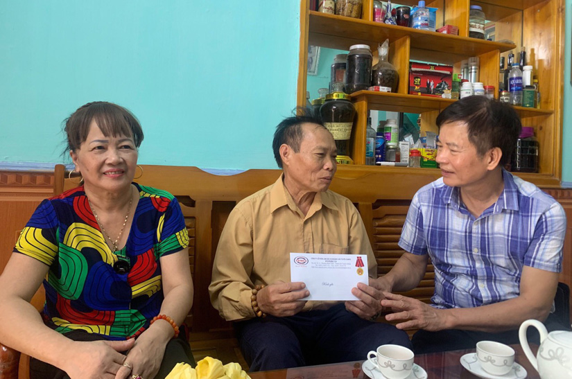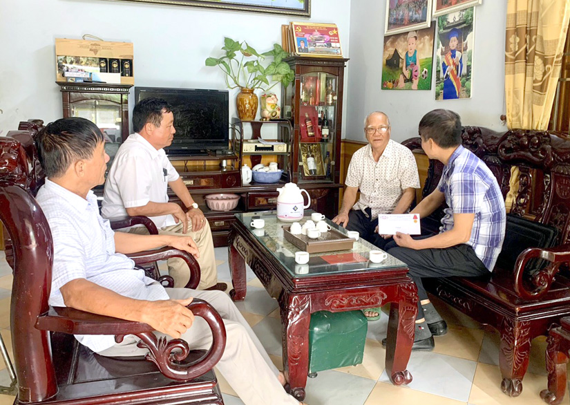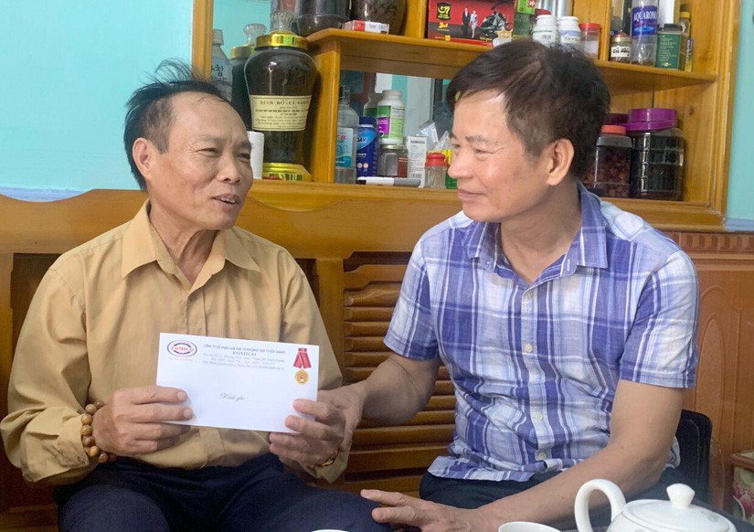 Thay mặt Công ty, ông Triệu Quang Nghị cán bộ Pháp chế của công ty và ông Trần Khắc Thơi giám đốc Chi nhánh Yên Sơn tặng quà ông Nguyễn văn Dụ, nguyên chủ tịch xã Thái Bình bị ảnh hưởng chất độc da cam dioxin.