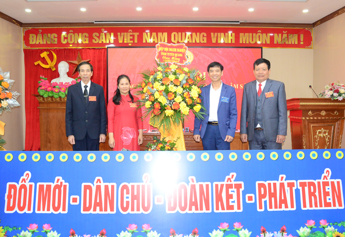 Thay hay mặt lãnh đạo Hiệp hội, ông Nguyễn Thế Hòa, Phó Chủ tịch tổng thư ký Hiệp hội DN tỉnh, tặng hoa chúc mừng Đại hội lần thứ VII Công đoàn Công ty CP Lâm sản và Khoáng sản Tuyên Quang.