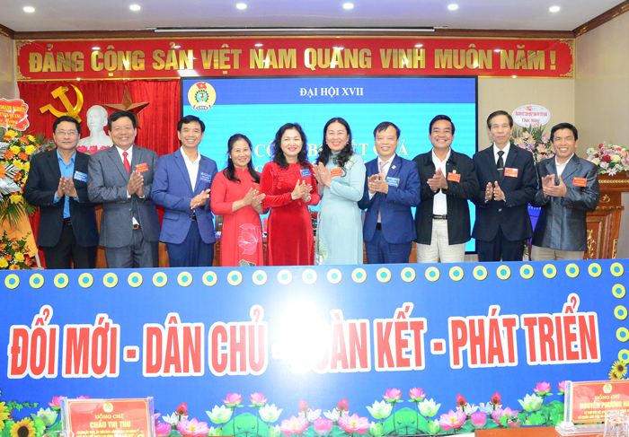 Các đồng chí: Nguyễn Thế Hòa, Phó Chủ tịch tổng thư ký Hiệp hội DN tỉnh; Nguyễn Phương Nam, Ủy viên BTV thường trực Hiệp hội DN tỉnh, Bí thư chi bộ, Chủ tịch HĐQT Công ty CP Lâm sản và Khoáng sản Tuyên Quang; Chẩu Thị Thu, Uỷ viên BTV LĐLĐ tỉnh, Thành uỷ viên, Chủ tịch LĐLĐ thành phố và đại biểu dự chúc mừng BCH Công đoàn Công ty CP Lâm sản và Khoáng sản Tuyên Quang nhiệm kỳ 2023- 2028.