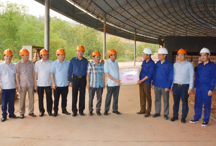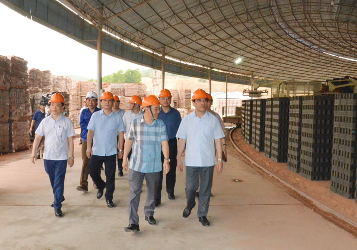 Đồng chí Bí thư Tỉnh ủy Chẩu Văn Lâm kiểm tra tình hình sản xuất gạch tuynel chất lượng cao Viên Châu tại Công ty cổ phần Lâm sản và Khoáng sản Tuyên Quang