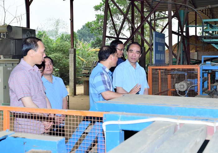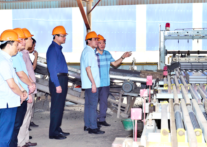 Cùng đi có đồng chí Nguyễn Mạnh Tuấn, Ủy viên BCH Đảng bộ tỉnh, Phó Chủ tịch UBND tỉnh; lãnh đạo Sở Công Thương, Sở Xây dựng, Văn phòng Tỉnh ủy. Các đồng chí Nguyễn Hữu Thập, Chủ tịch Hiệp hội DN tỉnh; Nguyễn Phương Nam, Chủ tịch HĐQT Cty CP Lâm sản & Khoáng sản Tuyên Quang trực tiếp báo cáo tình hình sản xuất với đồng chí Bí thư Tỉnh ủy và đoàn công tác.