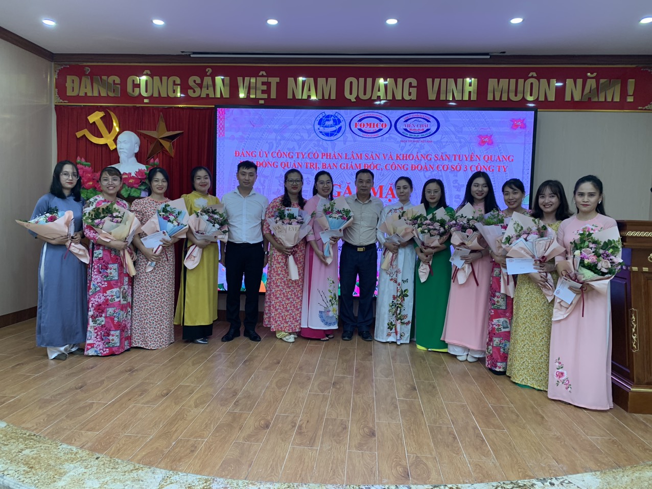Vì vậy ngày 20/10 công ty Lâm sản và khoáng sản Tuyên Quang đã tổ chức buổi gặp mặt chúc mừng 93 năm ngày phụ nữ Việt Nam tại hội trường công ty, nhằm chi ân các chị em phụ nữ trong công ty và cơ sở.
